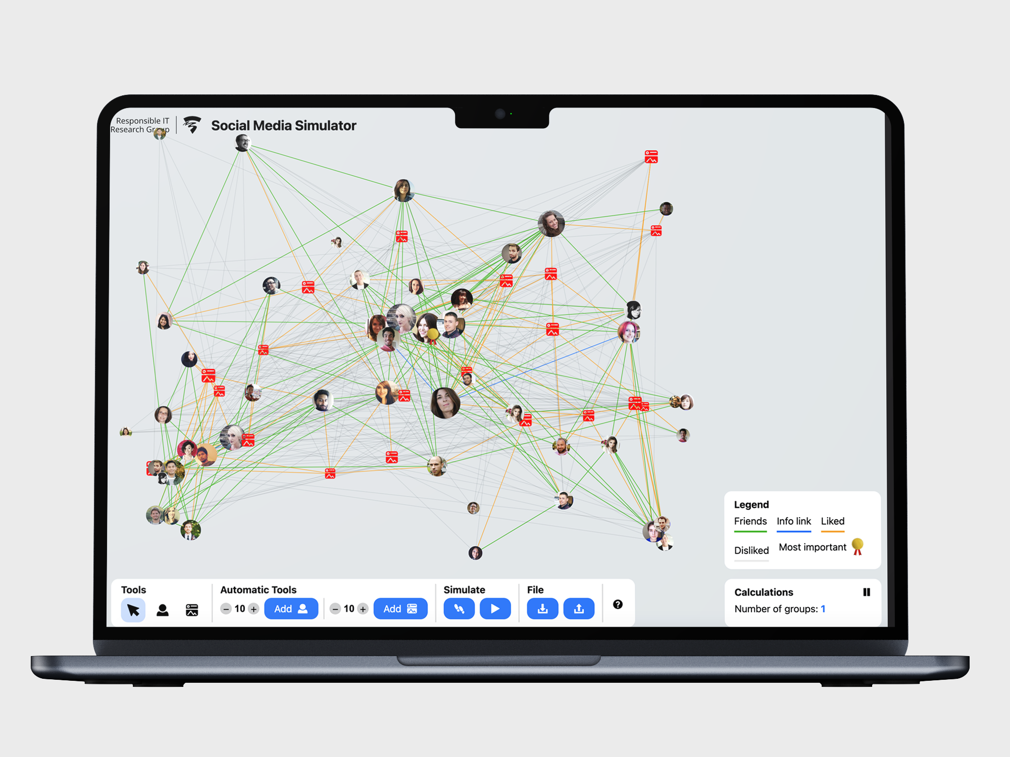 This project was developed as part of my minor in Web Design & Development for the Responsible IT master at the Amsterdam University of Applied Sciences. The goal was to show how a social network operates. The purpose of this application is to demonstrate how echo chambers (bubbles) form, how people become stuck inside those bubbles, and how this leads to being exposed only to fake news or one-sided information.